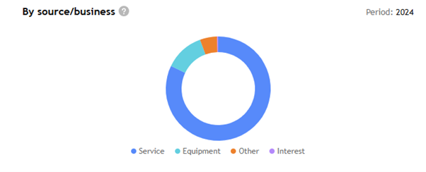 O defalcare a veniturilor companiei pe segmente de afaceri este prezentată în graficul următor.