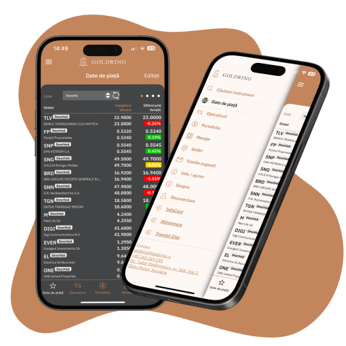 Cu Goldring, obții acces la date de piață în timp real și analize specializate, transformându-ne în partenerul tău de încredere pentru luarea deciziilor informate în materie de investiții. Tranzacționează cu ușurință la Bursa de Valori București!