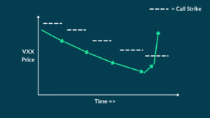Perioadele susținute de volatilitate ridicată sunt rare și nu durează la nesfârșit, dar matematica este în favoarea VXX în acele perioade, ceea ce face ca opțiunile call să fie instrumente de acoperire foarte eficiente. Participanții din piață sunt conștienți de acest lucru, ceea ce face ca opțiunile de cumpărare VXX să fie scumpe atunci când volatilitatea pieței este ridicată.