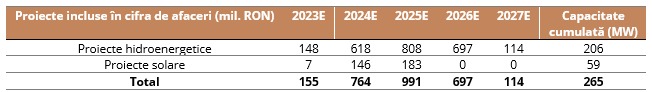 Strategia pentru următorii cinci ani include în principal finalizarea centralelor hidroelectrice aflate în construcție și identificarea, realizarea și punerea în funcțiune a unor noi capacități de producție a energiei electrice din surse hidraulice. Pe parcursul următorilor cinci ani, Grupul are ca obiectiv major creșterea capacității proprii de producție a energiei electrice, realizat în principal prin valorificarea potențialului hidroenergetic la nivel național, dar și prin finalizarea proiectelor aflate în prezent în curs de execuție. Această strategie pe termen lung evidențiază angajamentul Grupului Hidroelectrica în dezvoltarea sectorului hidroenergetic și în contribuția sa la creșterea producției de energie electrică din surse regenerabile și curate. De asemenea, luând în considerare exemplele anterioare de pe piața europeană, Hidroelectrica estimează că există posibilitatea implementării unei scheme de stimulare pentru proiectele eoliene offshore în viitor. În tabelul de mai jos sunt prezentate cheltuielile de capital estimate, bazate pe proiectele aprobate și incluse în planul de afaceri, precum și puterea instalată cumulată până în 2027 din proiecte hidroenergetice, estimată la aproximativ 206 MW, respectiv din capacitățile solare, estimată la aproximativ 59 MW.