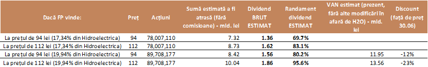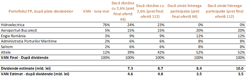 Listarea Hidroelectrica atrage atenția unui alt emitent listat la bursă și anume Fondul Proprieteatea. Ultimul raport al VUAN arată că 75% din activele Fondului sunt reprezentate de pachetul Hidroelectrica. Așadar, mai jos sunt calculele cu privire la sumele care ar putea fi atrase de FP în urma ofertei, dividendele ce ar putea fi plătite de către acesta, dar și un potențial randament:
