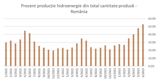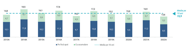 Dinamica rezultatelor Hidroelectrica este influențată, în principal, de doi factori importanți. Prețurile energiei și cantitatea de energie produsă. Anul 2022 a avut parte de prețuri ale energiei foarte ridicate, dar a fost un an secetos, afectând din plin producția de energie. În schimb, anul 2023 pare să fie oarecum opusul acestuia. Prețurile energiei continuă să scadă, însă producția de energie electrică continuă să fie influențată pozitiv de condițiile meteorologice din această primă jumătate a anului. Conform estimărilor noastre, care au la bază datele prezentate de Transelectrica, ponderea producției de energie hidro a depășit și s-ar putea menține peste ponderea de 50% din totalul producției de energie din România în luna iunie, deși luna nu este încheiată. Acestea fiind spuse, producția generată de către ape, majoritatea produsă de Hidroelectrica, ar putea, la finalul primelor șase luni, să fie cu peste 40% mai mare comparativ cu cea din S1 2022. Dinamica ar putea acoperi scăderile de aproximativ 30% din S1 2022 (comparativ cu S1 2021), din motivele prezentate anterior. Astfel, până la acest moment, producția din primul semestru pare să se asemene cu cea din S1 2021, fiind chiar ușor mai ridicată. Anul 2021 a fost cel mai bun an de producție pentru Hidroelectrica, din perioada 2019-2022, motiv pentru care ne așteptăm ca întreg anul 2023 să aducă o producție mai ridicată decât media ultimilor 10 ani, de 15,9 TWh.