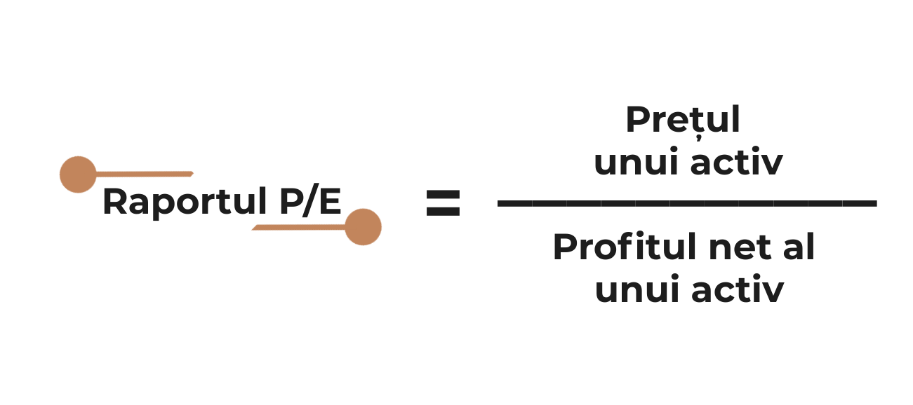 Raportul preț/profit (P/E) este unul dintre cele mai utilizate rapoarte de pe piață, deoarece este foarte relevant și foarte ușor de calculat. Se calculează prin împărțirea prețului unui activ la profitul net per activ și arată suma pe care tu, în calitate de investitor, trebuie să o plătești pentru a obține o unitate monetară din profiturile unei companii emitente de acțiuni, dar îți arată și în cât timp îți poți recupera investiția.
