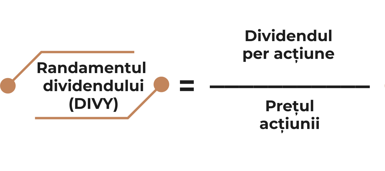 Randamentul dividendului (DIVY) reprezintă raportul dintre dividendul per acțiune și prețul acțiunii. Cu cât randamentul este mai mare, cu atât investitorii își recuperează mai repede investiția. Acest indicator este mai relevant în cazul companiilor de tip Value și mai puțin relevant în cazul celor de tip Growth, deoarece companiile de tip Growth adoptă o strategie de reinvestire a profilurilor, pentru a-și dezvolta afacerea. Companiile de tip Value sunt companii mature, care urmăresc acordarea de randamente mai ridicate ale dividendelor.