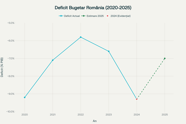 România a înregistrat în 2024 cel mai mare deficit bugetar din Uniunea Europeană, respectiv -9,3% din PIB, pe fondul creșterii cheltuielilor guvernamentale și al decalajului major față de venituri. Creșterea datoriei publice și presiunile bugetare determinate de obligațiile asumate prin Planul Național de Redresare și Reziliență (PNRR) intensifică nevoia de măsuri corective. Potrivit declarațiilor premierului Ilie Bolojan, deficitul ar fi ajuns la aproape 10% din PIB în absența reformelor, reprezentând un risc major pentru stabilitatea fiscală a țării.