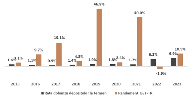 Oferta publică inițială (IPO) a Hidroelectrica s-a încheiat cu succes. Odată finalizată această etapă importantă, se pune în discuție următoarea destinație a fondurilor restituite investitorilor (peste 4 mld. lei), ca urmare a suprasubscrierii. Menținerea acestora într-un mediu cu dobânzi bancare ce oferă randamente reale negative de câțiva ani nu reprezintă o opțiune favorabilă. În schimb, investitorii pot descoperi oportunități promițătoare printre acțiunile, obligațiunile și titlurile de stat listate la Bursa de Valori București (BVB), cu perspectiva unei posibile oferte de titluri de stat Fidelis în viitorul apropiat. Micii investitori au investit peste 6,2 mld. de lei în ofertă. Ca și termen de comparație, valoarea tranzacționată la Bursa de la București din acest an, a tuturor acțiunilor listate pe piața principală, abia a depășit pragul de 4,2 mld. lei. Mai departe, știm bine calculele. Și-anume: o mare parte din acești bani, adică peste 4 mld. lei vor ajunge înapoi la investitori (ca urmare a suprasubscrierii), urmând ca banii să aibă destinații diverse. Așadar, în acest material ne propunem să evidențiem motivele pentru care un investitor ar trebui să ia în considerare menținerea capitalului în contul de tranzacționare și să exploreze posibile oportunități suplimentare, în afara ofertei recent încheiate. Bursa oferă diverse acțiuni și titluri de stat, care pot reprezenta o alternativă mult mai adecvată în contrast cu dobânzile bancare care au un istoric solid de a genera pierderi de bani în termeni reali, luând în calcul și inflația.Cum au evoluat acțiunile listate la BVB în ultimii ani?