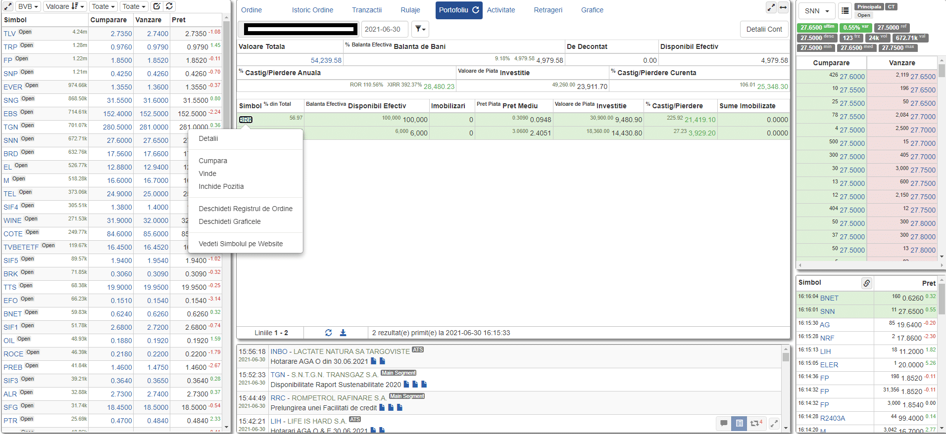 Funcția de Portofoliu – oferă o imagine consolidată a banilor disponibili și a instrumentelor pe care investitorii le dețin pentru fiecare tip de cont administrat de utilizatorul curent. Portofoliul este evaluat la piață, în timp real, în funcție de prețurile din piață, iar profitul sau pierderea marcată sau nemarcată sunt evidențiate.
